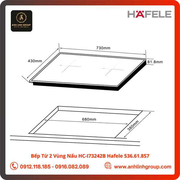 – Bếp từ 2 vùng nấu lắp âm Hafele HC-I73242B sở hữu thiết kế hiện đại với mặt kính Schott Ceran sang trọng viền đồng tinh tế.