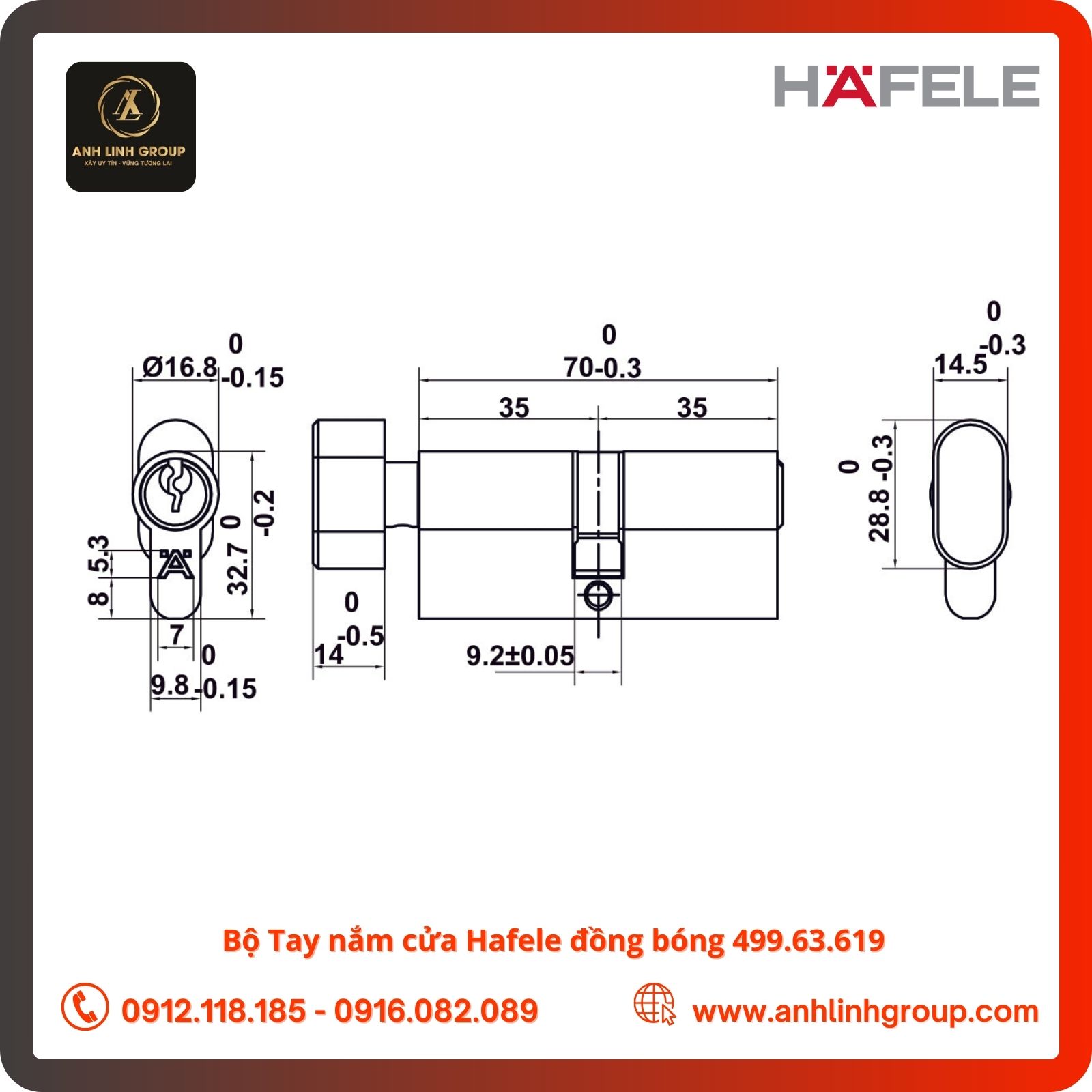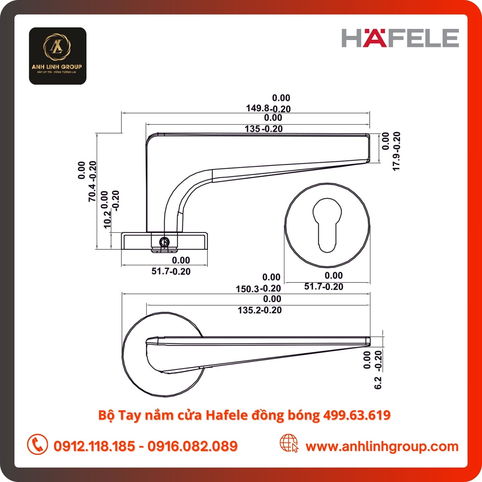 Review Bộ khóa tay nắm cửa Hafele đồng bóng 499.63.619