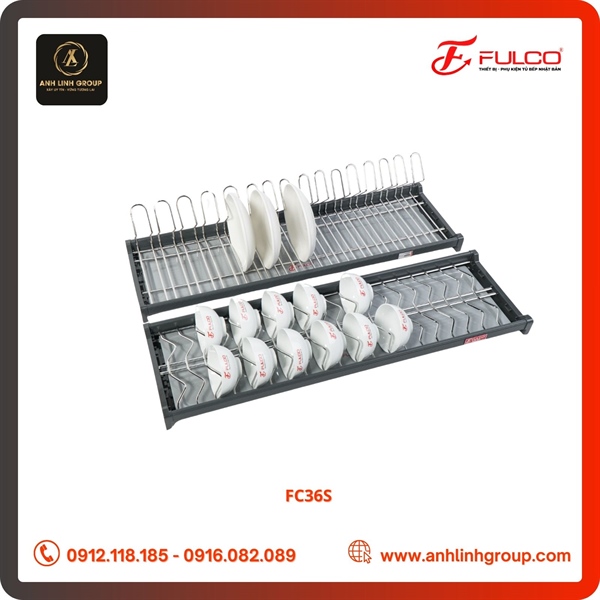 Giá bát đĩa cố định khung nhôm inox Oval 304 cao cấp Mã FC36S