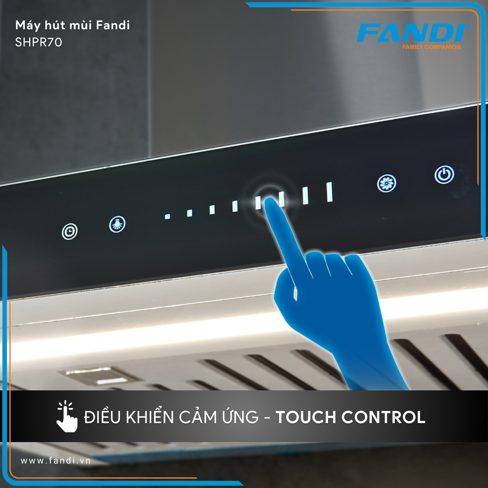 Công nghệ Touch Control cho phép điều khiển máy hút một cách dễ dàng với thao tác chạm nhẹ. Mạch điều khiển của máy hút mùi Fandi SHPR70/90 được tối ưu hóa sâu, cảm ứng ngay cả khi tay ướt. 4 mức tốc độ nấu linh hoạt đáp ứng tuyệt vời nhu cầu nấu nướng.