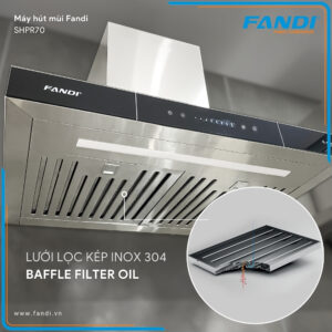 Được thiết kế đối lưu khiến hơi nước, hơi dầu mỡ ngưng tụ và đọng lại tại các rãnh chứa. Chất liệu inox 304 không rỉ đảm bảo luôn sáng bóng bất chấp sự ăn mòn trong môi trường bếp. Tháo lắp, vệ sinh dễ dàng hơn so với lưới lọc nhôm truyền thống. Ngoài ra, máy hút mùi Fandi SHPR70/90 còn được tăng cường khả năng khử mùi với Than Hoạt Tính.