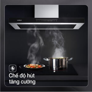 - Điều khiển không chạm với cảm biến vẫy tay để bật/tắt và điều chỉnh lực hút, tránh vấy bẩn lên bề mặt thiết bị khi tay dính dẫu mỡ…