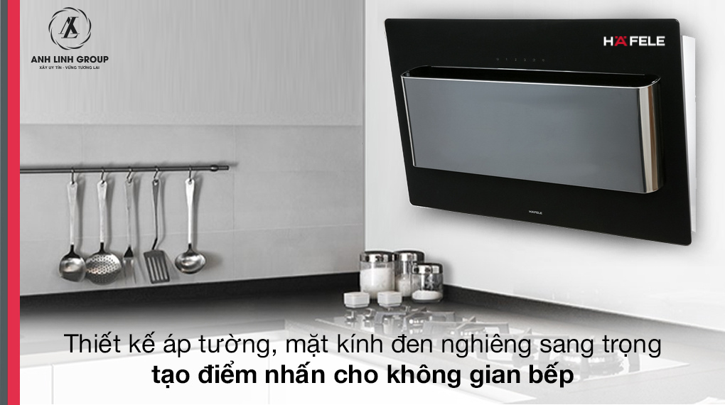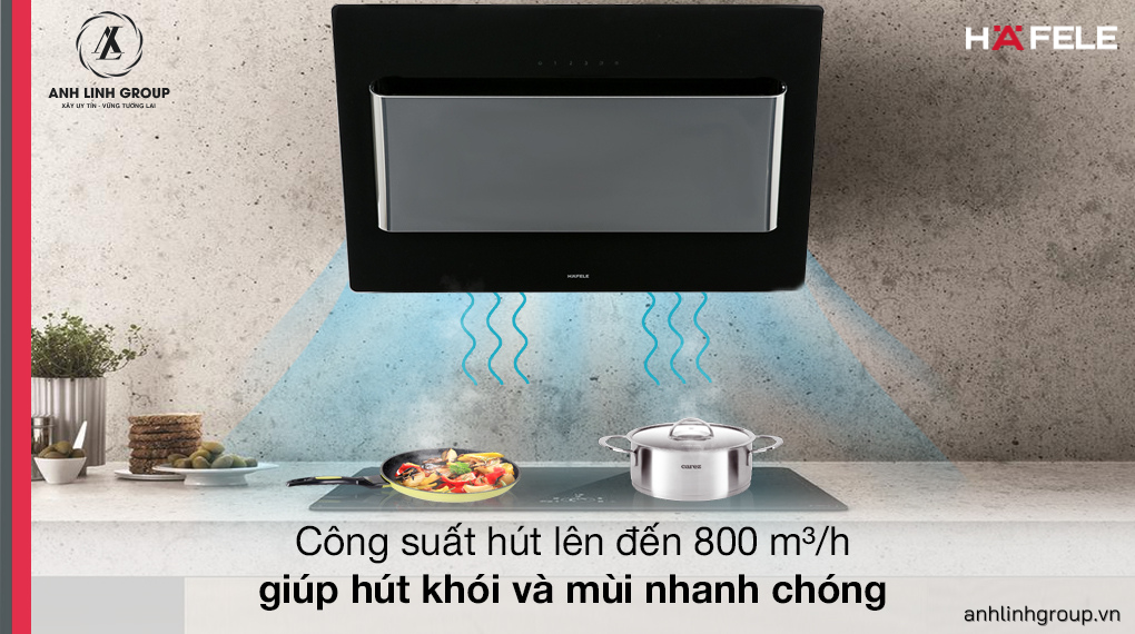 Mẫu máy hút mùi cao cấp, lắp đặt áp tường hoặc áp tủ bếp, chính hãng HAFELE, kích thước 800mm