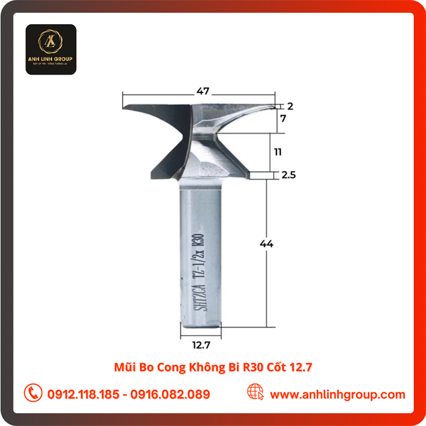 Mũi bo cong không bi R30; R18 cốt 12.7