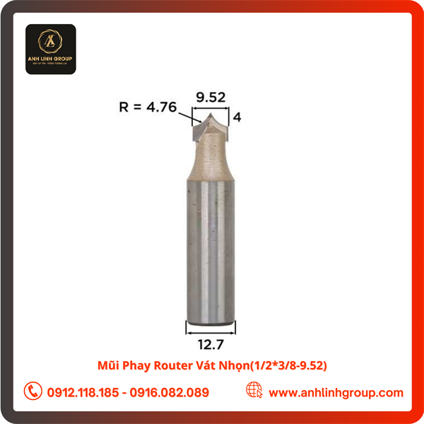 Mũi Phay Router Vát Nhọn(1/2*3/8-9.52)