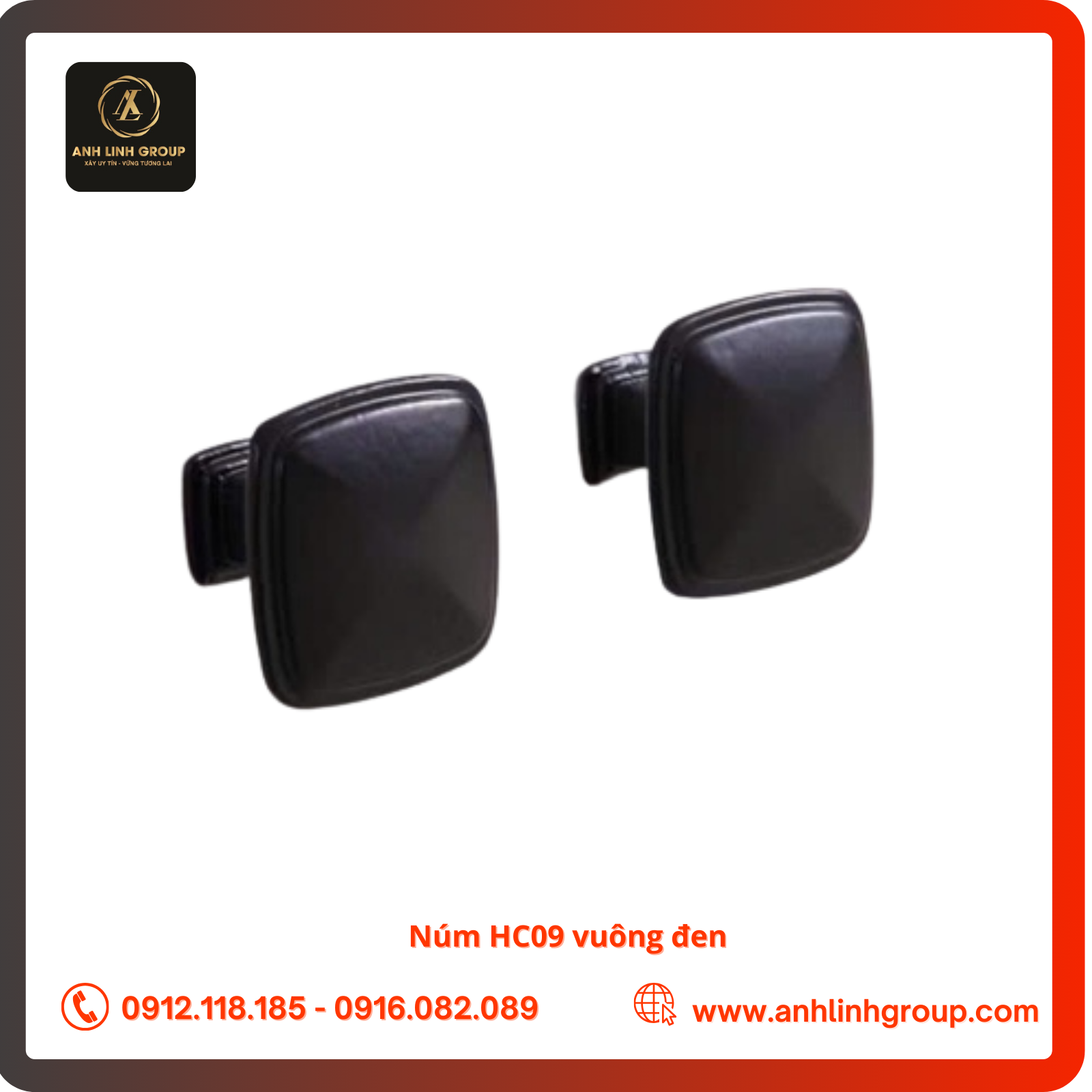 Núm HC09 vuông đen có thiết kế đơn giản từ hợp kim cao cấp với khuôn dạng đầu vuông và đế tròn đứng. Sản phẩm giúp thực hiện thao tác đóng mở cánh cửa tủ trở nên dễ dàng và thuận tiện.