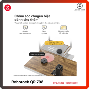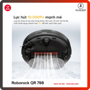 Roborock QR 798 với lực hút 10.000Pa, chổi chống rối và giẻ lau xoay kép. Công nghệ Reactive Tech giúp di chuyển mượt mà, tránh va chạm. Dock sạc đa năng tự động đổ rác, giặt giẻ, tối ưu thời gian dọn dẹp. Điều khiển dễ dàng qua ứng dụng Roborock, mang đến trải nghiệm làm sạch thông minh, tiện lợi.
