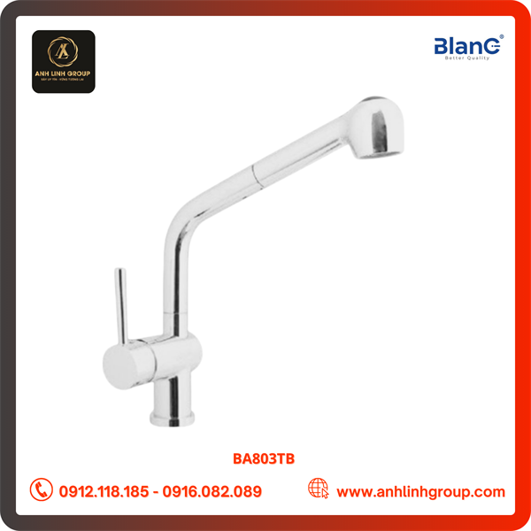 Tên sản phẩm: Vòi kéo rút nóng, lạnh mạ đồng BLANC BA803TB